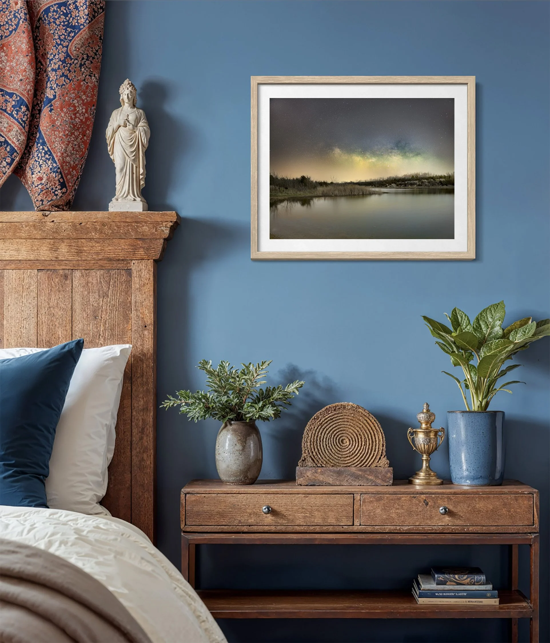 With less local light pollution showing in the photos, it is easier to get detail in the whole starry sky. Even though the stars are still faint, and the colors sort of glow instead of pop, the ethereal feeling in the photo is perfect for a calming space.